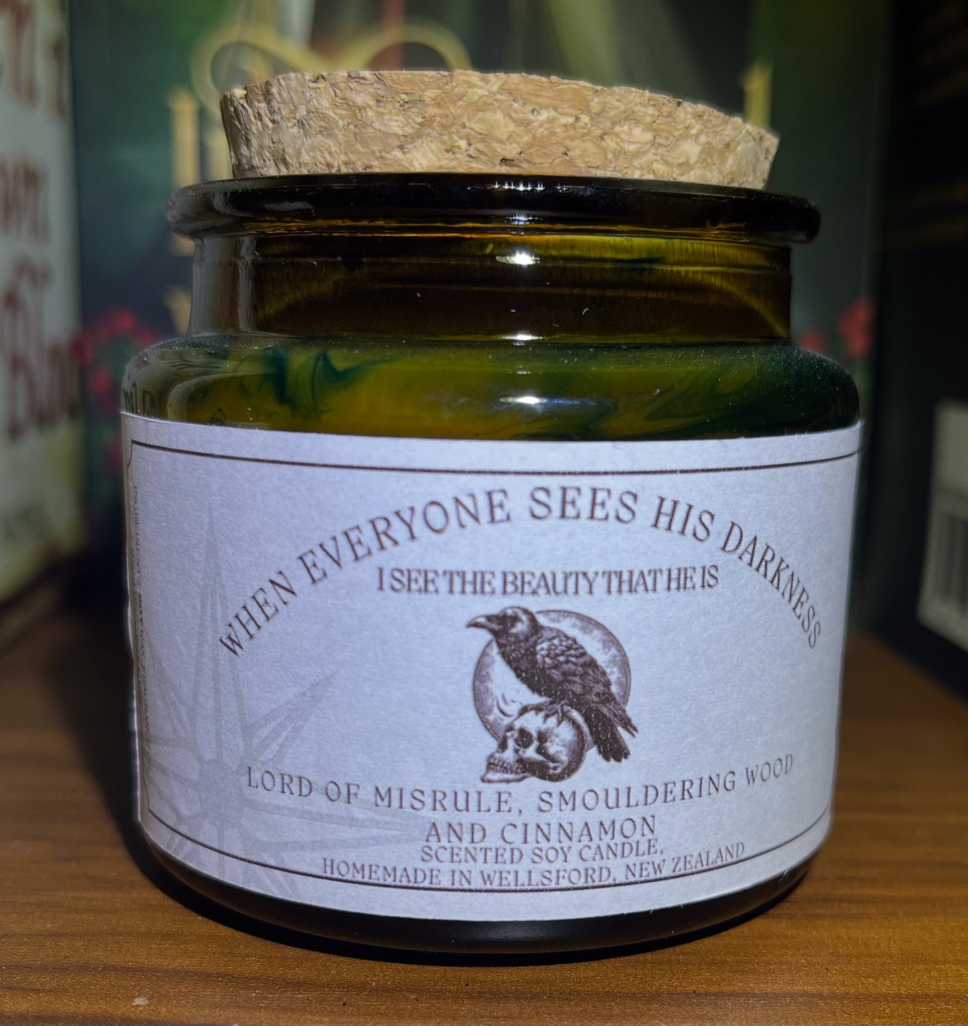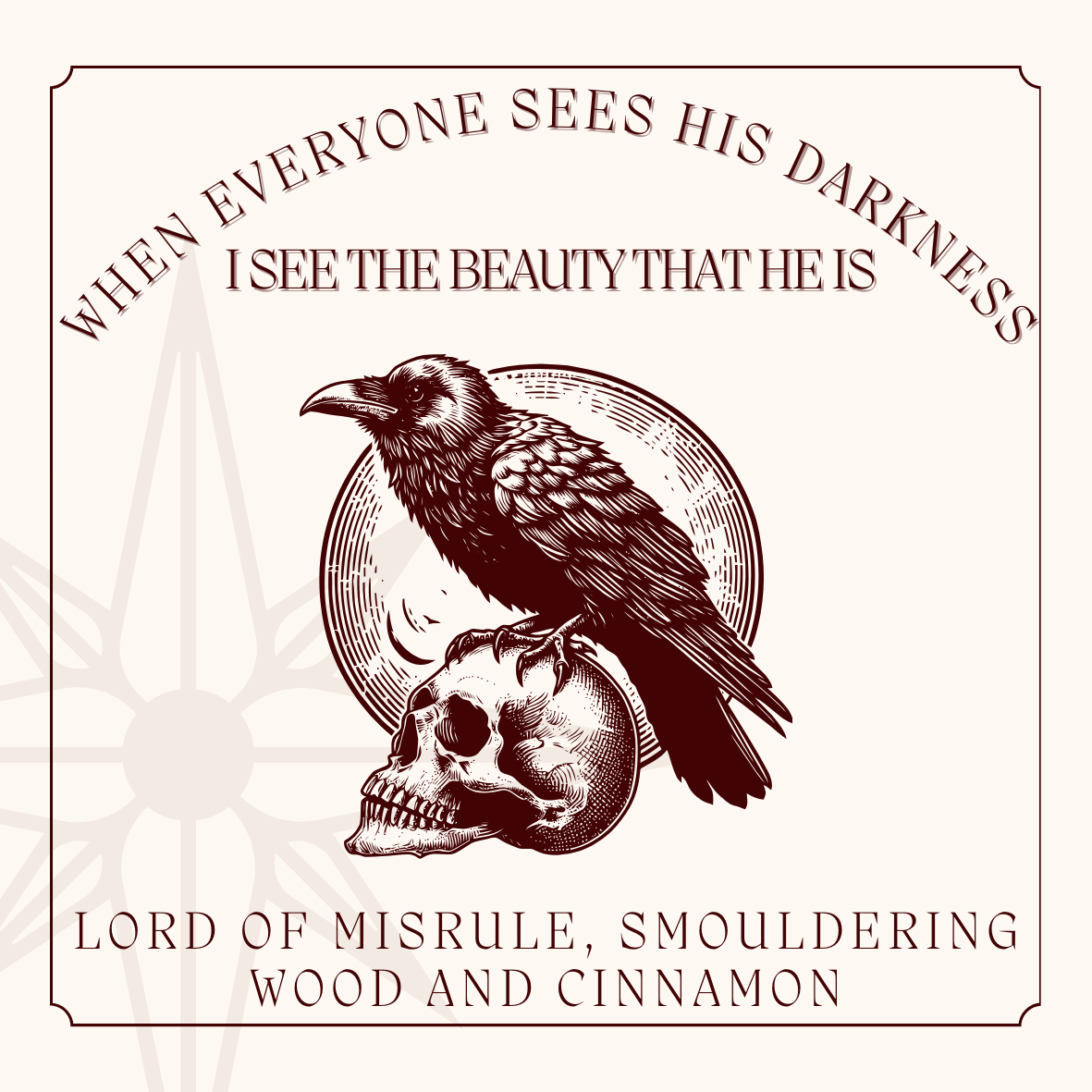 In the depths of fire and brimstone, a man awaits the one who will see the truth behind the chains of lies that bind him. The scent of smouldering wood and burn of cinnamon clings to his skin, mixing with the musk, patchoulli, black peppercorn and orange of his own unique scent. He is the Lord of Misrule indeed.